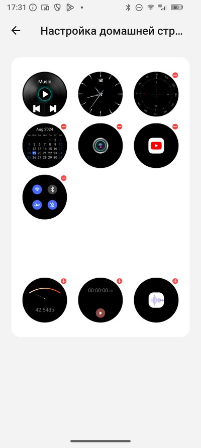 Выбор циферблатов для дополнительного экрана.