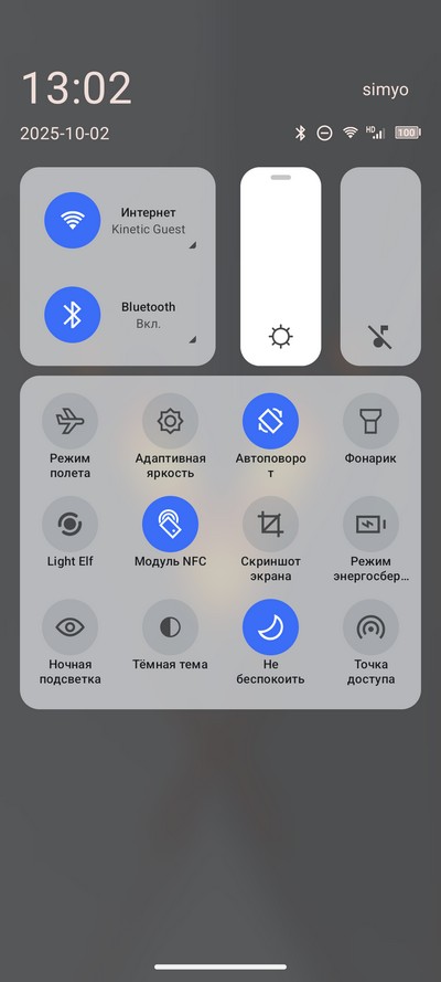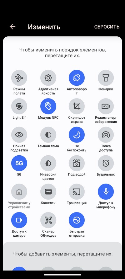 Настраиваемая область быстрых переключателей.