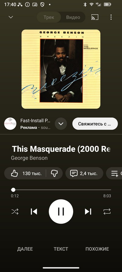 Для проверки беспроводного звучания подключил наушники Nothing Ear (2). Наушники подключились по кодеку AAC. Качество очень приличное: неплохие басы, почти не провисающая середина, нормальные высокие. Уровень максимальной громкости был достаточным для шумного окружения.