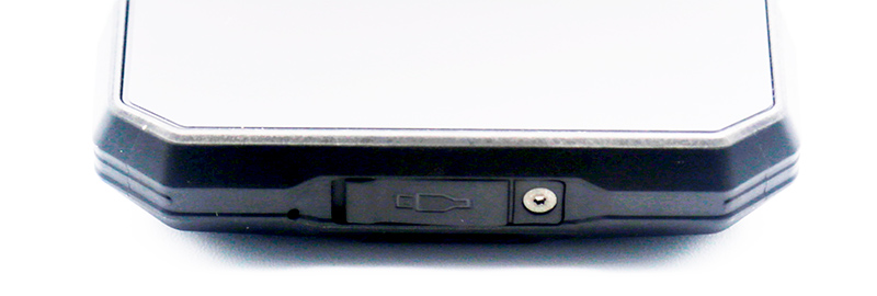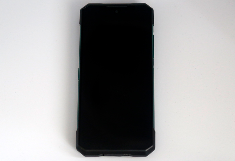Лицевая часть смартфона - типовая для защищенных смартфонов такого типа. Дисплей покрыт очень прочным стеклом, которое еще и утоплено примерно на миллиметр относительно бортиков - чтобы удар приходился на бортик, а не на стекло. Рама смартфона выполнена из алюминиевого сплава.