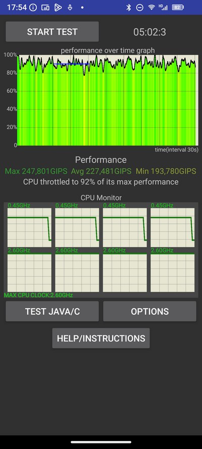 Тест на троттлинг. Потеря производительности при нагрузке здесь минимальная - порядка 5%.