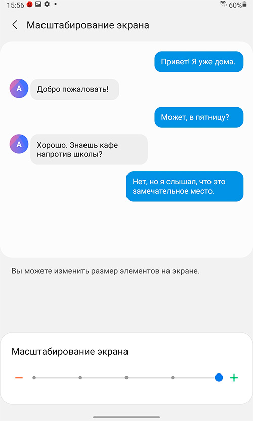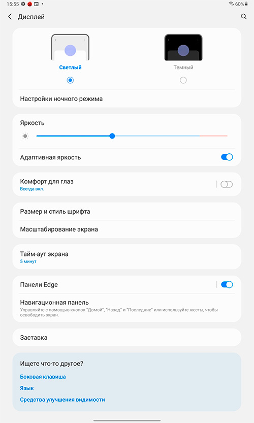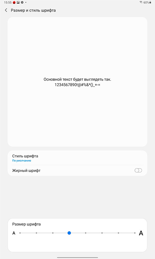 В настройках можно настраивать цветовую температуру, размер шрифта и масштаб элементов.