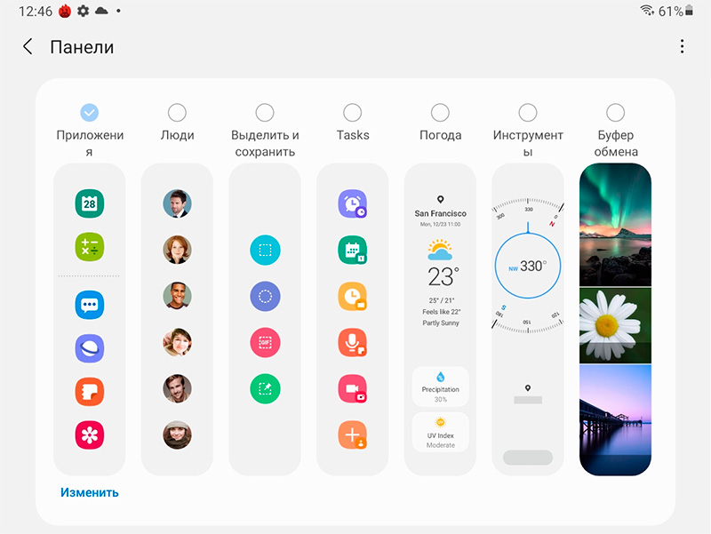 Также есть стандартные самсунговские панели Edge, которые можно настраивать.