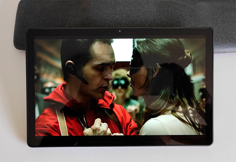 Планшет позиционируется как развлекательный (не в плане игр, а в плане просмотра фильмов, роликов и так далее), снабжен четырьмя динамиками и технологией улучшения звука Dolby Atmos, и звук здесь действительно выдающийся: отличное качество и отличная громкость - когда я включал звук на полную на третьем этаже дома, планшет отлично было слышно на первом этаже. При этом даже на максимальной громкости никаких хрипов.