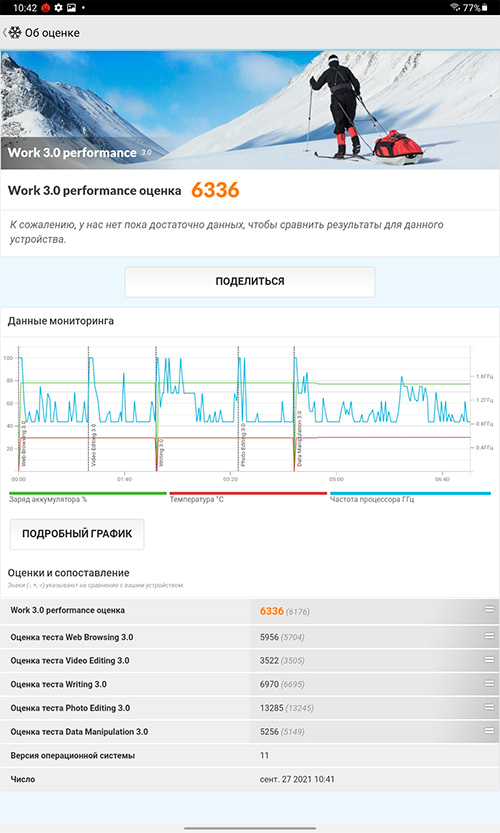 Очень хороший показатель, данный планшет занимает седьмое место в рейтинге планшетов PCMark.