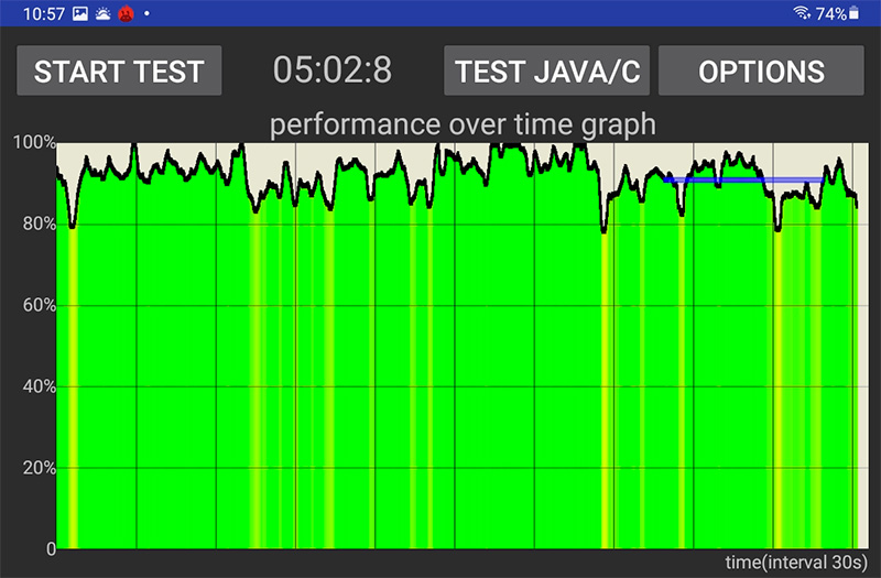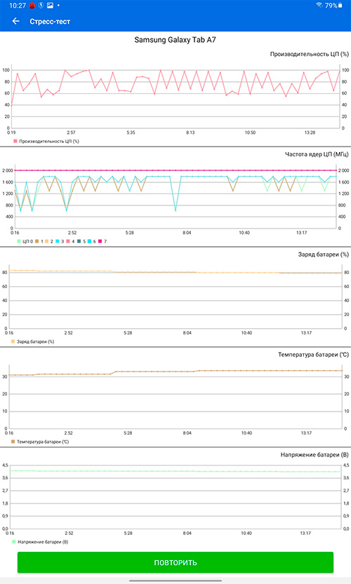 Стресс-тест AnTuTu. Температура батареи не превысила 35 градусов.