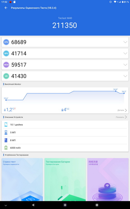 Индекс по AnTuTu - вполне неплохо для планшета такой стоимости.