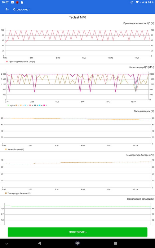 Стресс-тест AnTuTu. Пристойно, температура даже не дошла до 40 градусов.