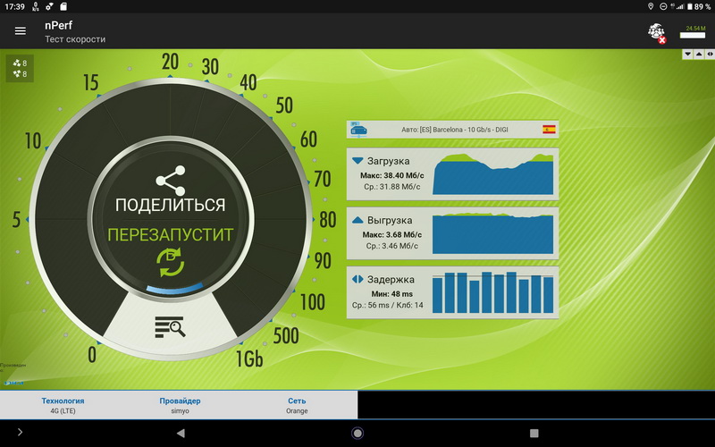 Тест Интернета через сим-карту - вполне неплохо.