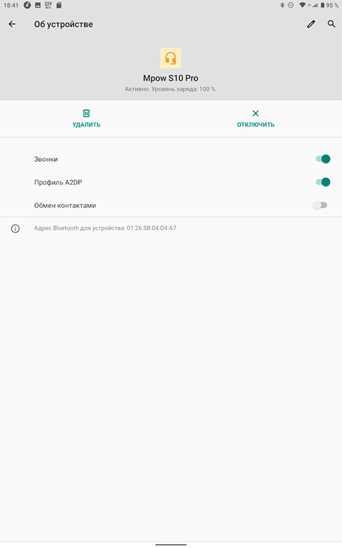 Для проверки беспроводного звучания подключил наушники Mpow S10 Pro. Кодек AAC при подключении не показали, но качество звука - отличное: хороший запас по громкости, звук очень чистый и детальный, неплохие для дешевых затычек басы, яркие и чистые средние, очень чистые высокие. Просто отлично!