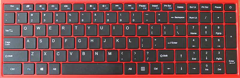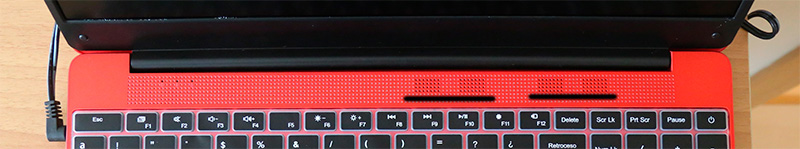 В верхней части корпуса над клавиатурой расположены два динамика - я подчеркнул их местоположение черным. Слева над клавиатурой расположены три светодиода: питание, капслок и нумлок.