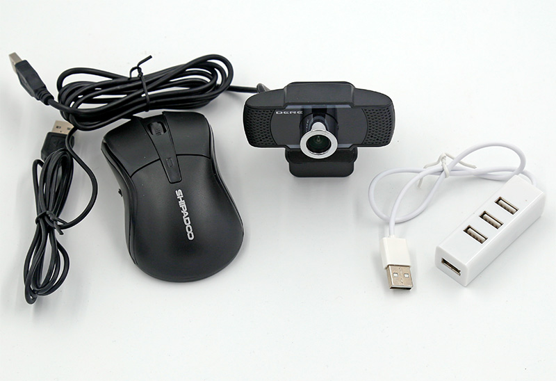 Также производитель отдельно приложил к комплекту: проводную мышь с ковриком, веб-камеру FullHD собственного производства и USB-хаб на четыре порта. Пустячок, а приятно.
