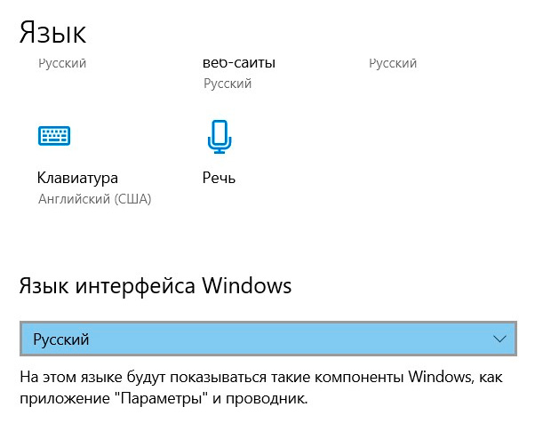 В настройках Windows интерфейс легко и просто переключается на русский.