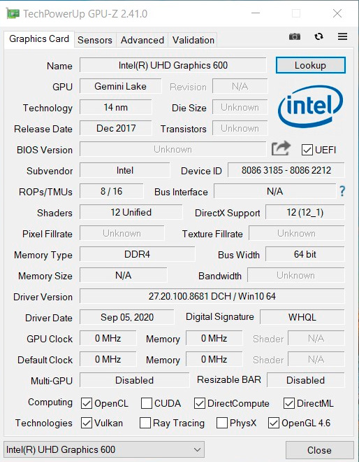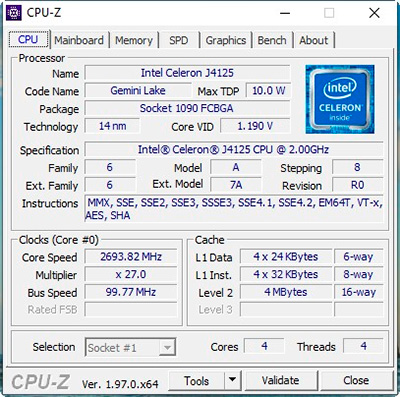 Процессор: Intel Celeron J4125 (Gemini Lake), 1,8-2,5 ГГц, 4-ядерный