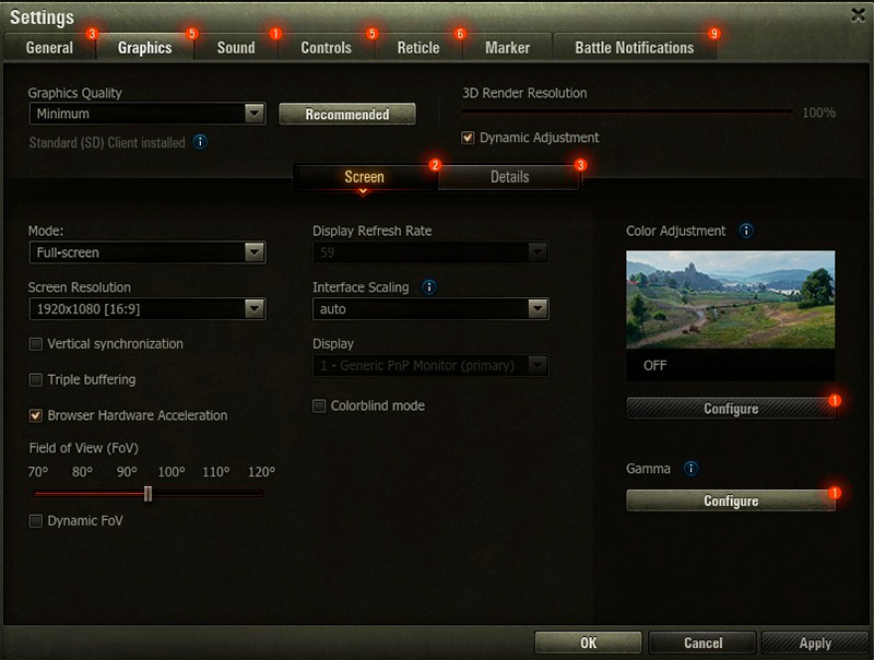 Это совсем не игровой ноутбук, однако я из чистого интереса установил на него клиента World of Tanks и запустил его. Программа выставила минимальные настройки качества, но играть было комфортно - танчики катались вполне шустро.