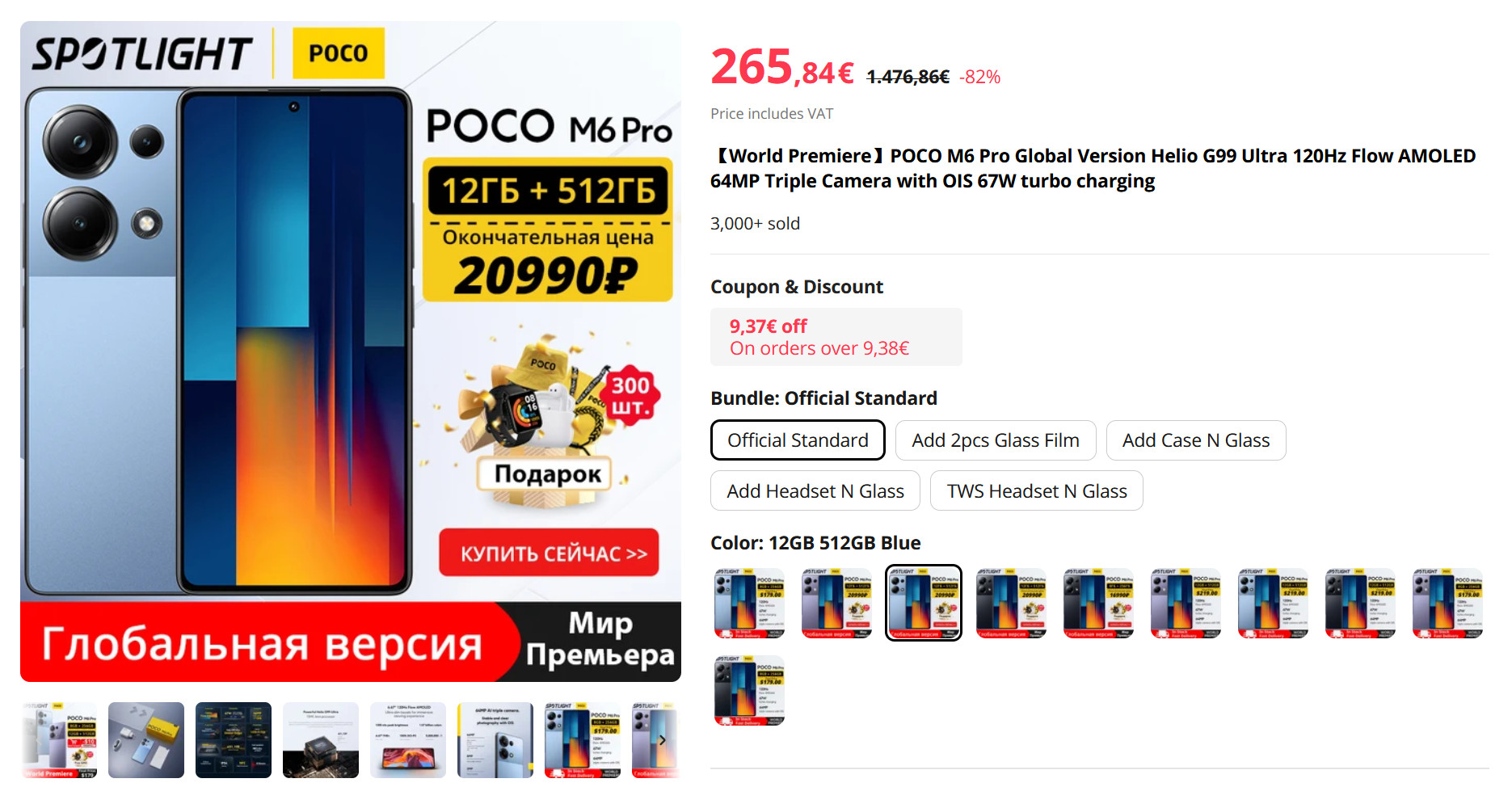 На Али - то же самое. Вон Poco M6 Pro - €229.