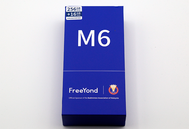 Мало чем примечательная упаковка с названием модели и указанием на щедрый размер памяти, однако самое главное в коробке - надпись о том, что FreeYond является официальным спонсором Ассоциации бадминтона Малайзии. Да я бы только за это такой смартфон купил, обожаю спортивный бадминтон!