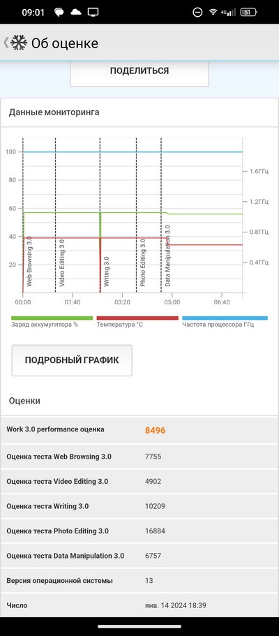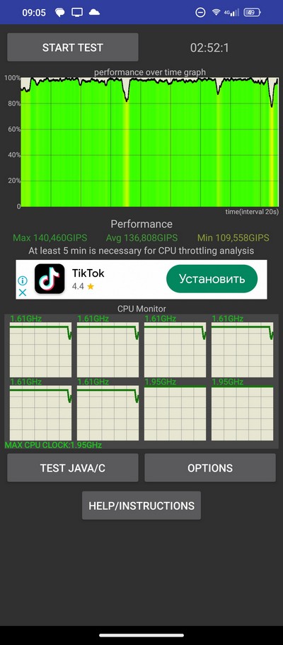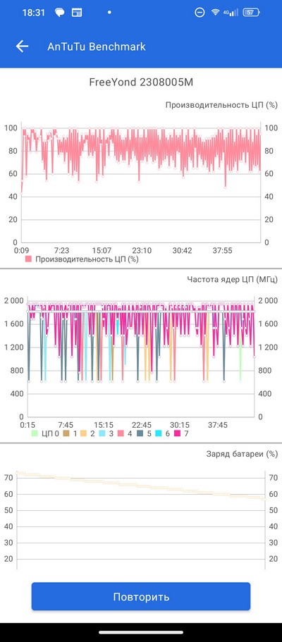 Тест на троттлинг. Тут все хорошо, падения производительности под нагрузкой практически не наблюдается.