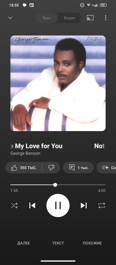 По какому кодеку подключились наушники - смартфон не показал, но на AAC, судя по качеству, похоже. Неплохая детализация, уверенные средние и приличные высокие, басы для затычек - нормальные. Хороший запас по громкости - на улице дискомфорта не будет.