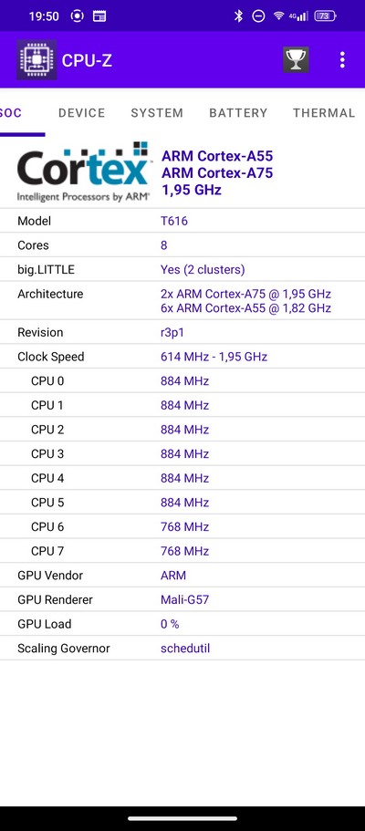 Процессор: Unisoc T616 Octa core up to 2.0 GHz 12nm