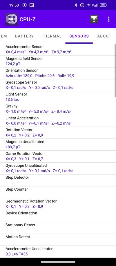 Дополнительно: датчик освещения, гироскоп, акселерометр