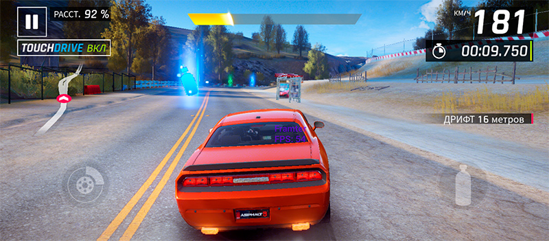 Asphalt 9 на настройках приоритета производительности катался достаточно плавно, но лаги временами проскальзывали. FPS ниже 50 в самых динамичных сценах не опускался.