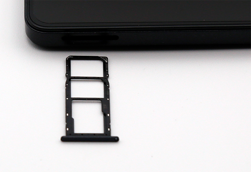 На левой грани - слот со вставкой под симкарты и карту памяти.