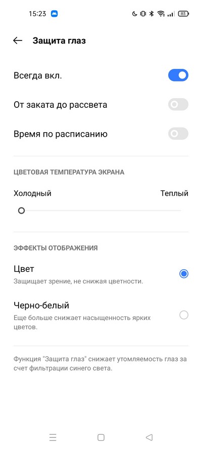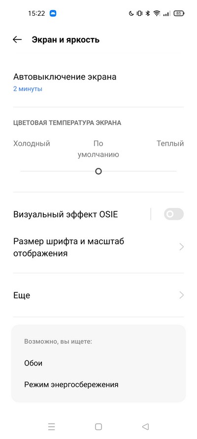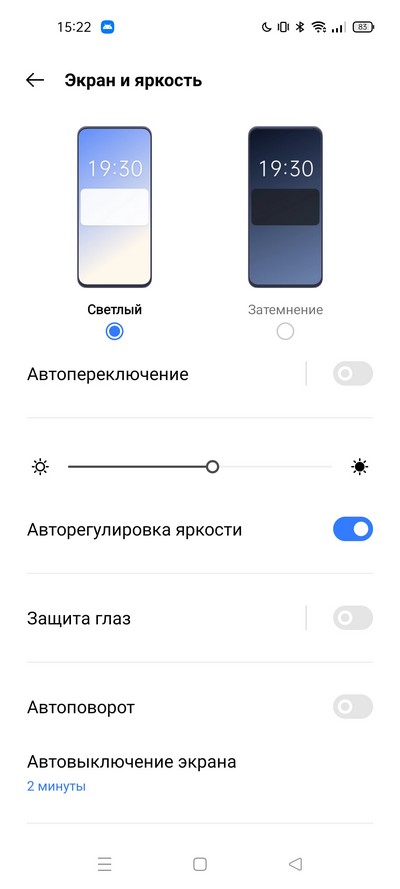 Настройки экрана. Темная и светлая темы (есть автоматическое переключение), настройка температуры экрана.