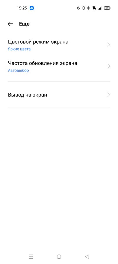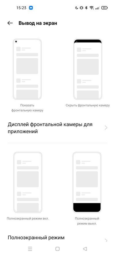 Настройка цветового режима и частоты обновления, настройка отображения выреза для камеры.