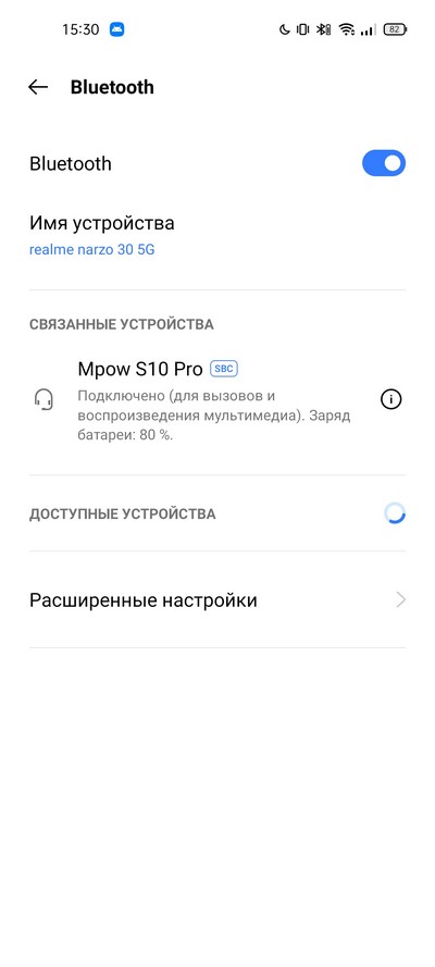 Для проверки беспроводного звучания подключил наушники Mpow S10 Pro. Наушники подключились по кодеку SBC. Однако их можно было переключить на AAC в профиле.