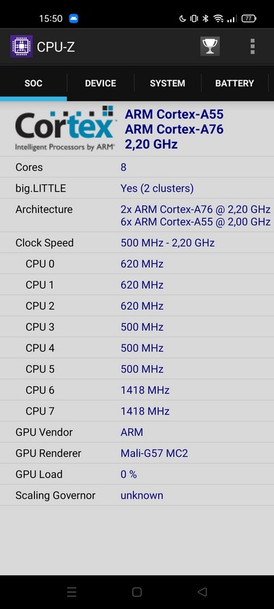 Процессор: MediaTek MT6833 Dimensity 700 5G (7 nm), CPU Octa-core (2x2.2 GHz Cortex-A76 & 6x2.0 GHz Cortex-A55)