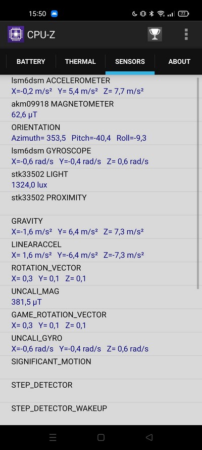 Дополнительно: акселерометр, датчик освещения, приближения, компас