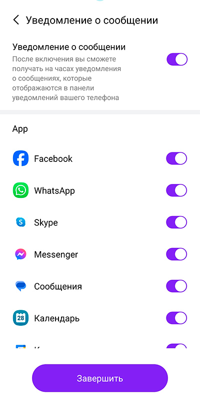 Можно задавать, от каких приложений принимать уведомления на часах.