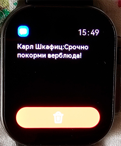 Уведомления на часы приходили исправно, но, как это бывает в дешевых часах, приходили лишние уведомления о том, что часы снова подключились к смартфону (после того как я отходил в другую комнату и потом возвращался), так что я теперь снова буду получать уведомления.