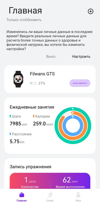 Мониторинг: сон, физическая активность, тренировки, сердечный ритм, SpO2, стресс