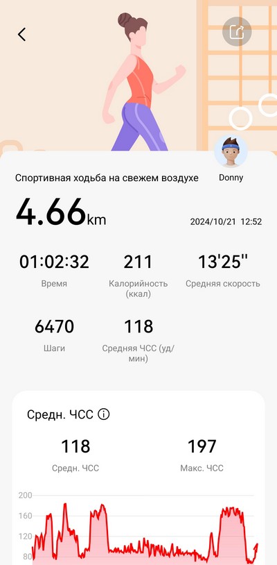 Ходьба. С пульсом прям явно сильно налажала, там была спокойная прогулка.