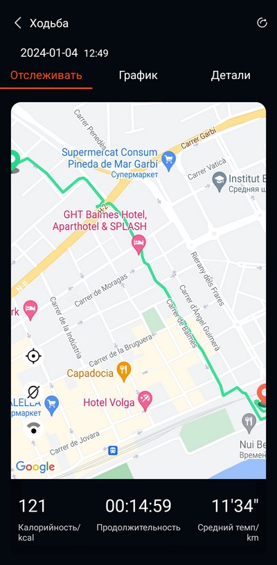 С определением расстояния часы не лажали, трек перемещения отслеживали четко: все-таки наличие GPS для уличных активностей - это важно.