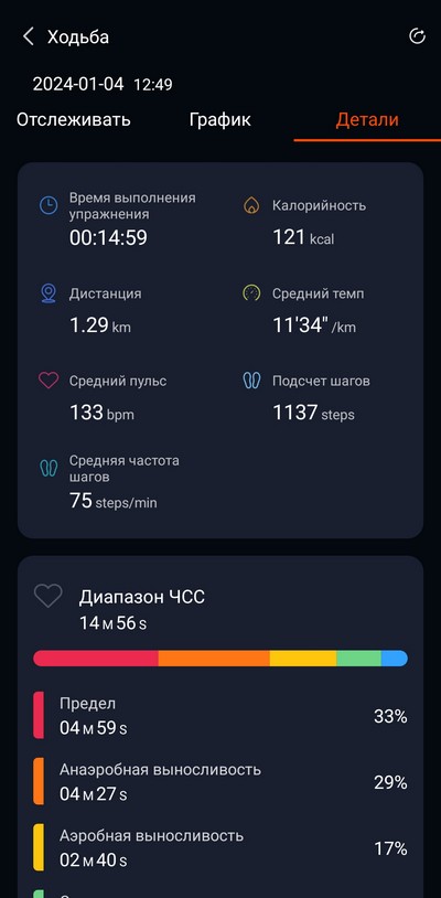 Отслеживание тренировки: главное окно, также там идет несколько информационных окон по свайпу вверх.