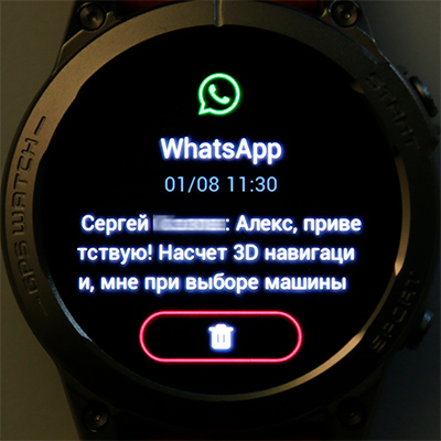 Свайп вниз от циферблата - список пришедших сообщений и просмотр каждого из них.