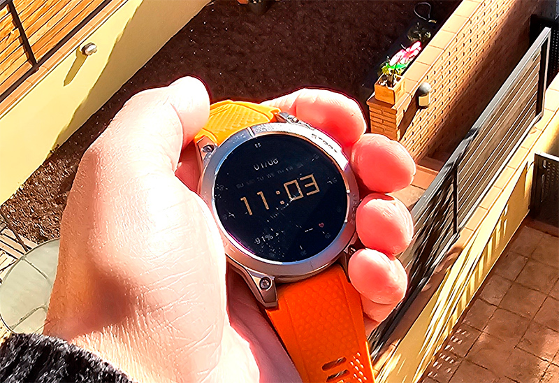 Экран у часов - отличного качества, как и у Ares 3 Pro. Обычно в бюджетных часах попадаются дисплеи на IPS-матрице, причем нередко - плохого качества, а здесь - Ultra HD AMOLED с яркими и сочными цветами, при этом у часов хороший запас по яркости, и на прямых солнечных лучах изображение хорошо различимо.