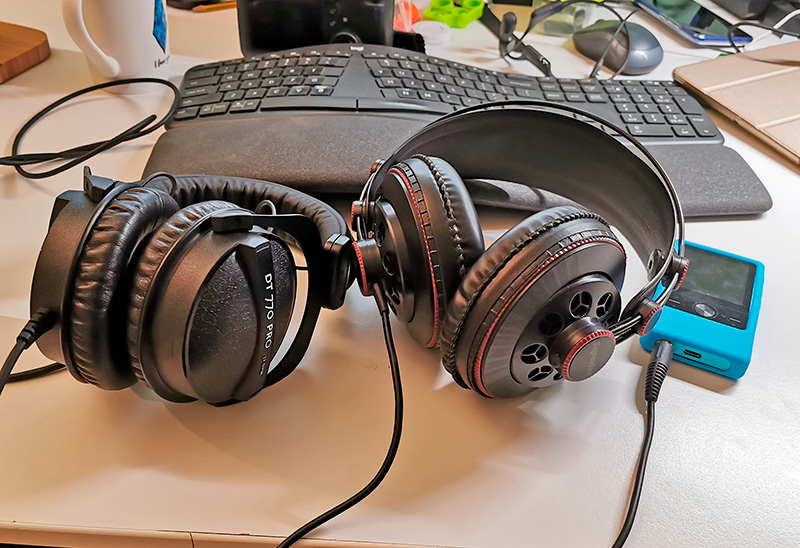 Ну и после этого, как следует послушав данные наушники, я беру свои основные проводные Beyerdynamic DT 770 Pro и сравниваю. И так я погонял одни и другие наушники на разных композициях.