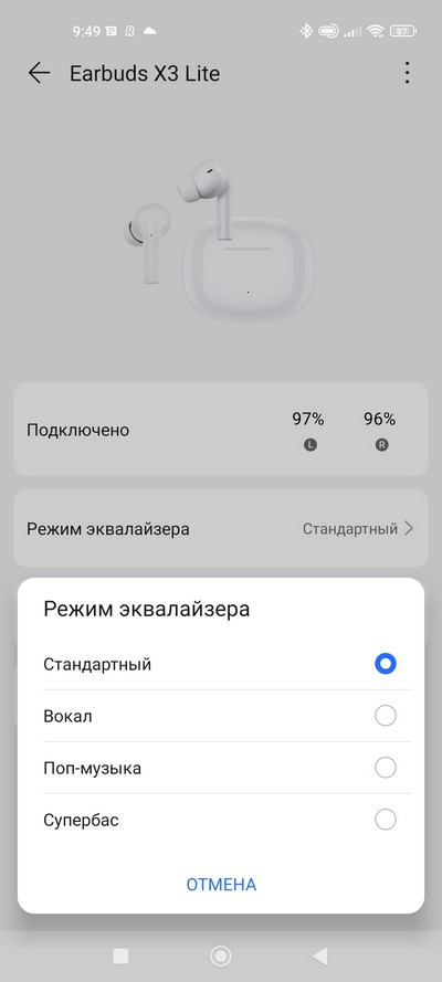Лучше всего на самом деле эти наушники звучат в режиме "Стандартный" - то есть с настройками по умолчанию.