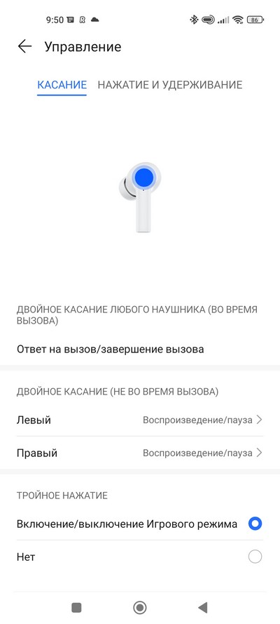 Специальный игровой режим, который здесь включается тройным касанием, я протестировал: погонял с ним воспроизведение звука аудиороликов, чтобы не было отставаний. Их не было, но и в обычном режиме каких-то задержек звука я не заметил. Тем более что здесь поддерживается самый новый протокол Bluetooth v5.3.