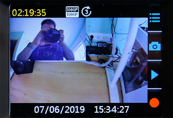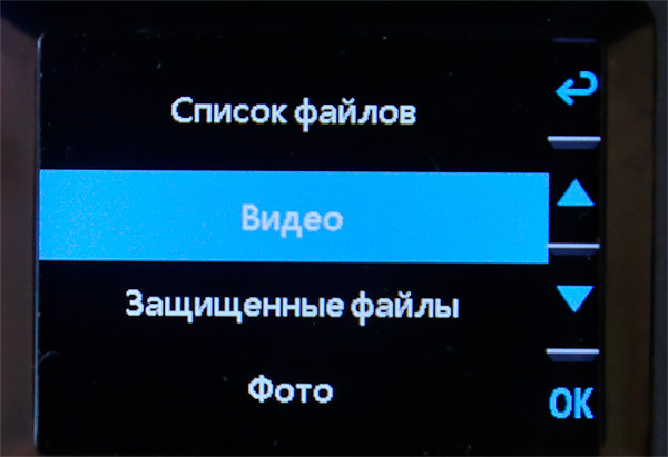 При нажатии кнопки "ОК" появляется меню справа: верхняя кнопка - настройки, следующая - сделать фото, третья кнопка - режим воспроизведения записанных медиаданных, нижняя кнопка - включение видеозаписи.