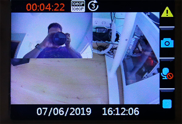 Ну что, модель действительно оказалась очень интересной и, судя по всему, в своем классе - даже уникальной. При наличии двух камер размер корпуса почти не отличается от стандартного (тот же Cansonic Z1 Dual GPS шире в полтора раза). Салонная камера имеет точно такое же разрешение, как и основная, и обе камеры пишут раздельные ролики хорошего качества с разрешением FullHD 30 fps, которые синхронизированы друг с другом по таймингу и их при необходимости с легкостью можно склеить без потери качества.