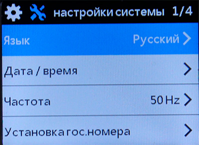 Нажатие кнопки меню - настройки записи, настройки системы.