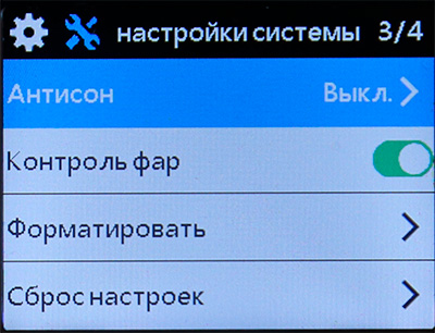 Контроль фар - напоминание о необходимости включить освещение. Работает автоматически в зависимости от освещенности вокруг. Как только в кадре регистратора становится слишком темно, аппарат издает громкий звуковой сигнал и показывает на экране тематическую картинку. Вот это может пригодиться в долгой дороге, когда не замечаешь, как постепенно темнеет.