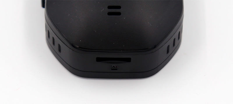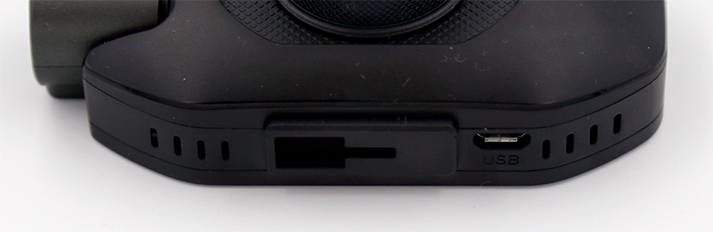 На верхнем торце видеорегистратора - площадка крепления под присоску и порт microUSB для зарядки.