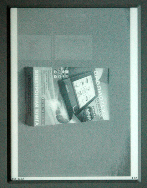 Просмотр фотоизображений - разумеется, в режиме градаций серого. Кому это все может понадобиться, непонятно, но разработчики все время включают в устройства возможность просмотра фото. (Хотя понятно, что поддержка просмотра изображений в книгах и статьях - более чем востребована.)