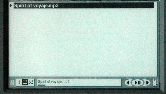 Просмотр списка аудиотреков (устройство само ищет MP3 и WAV, после чего выдает их общим списком) и прослушивание.